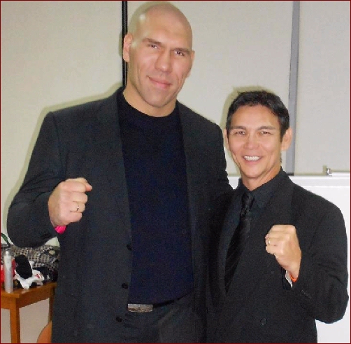 At the Draka event in Khabarovsk, Russia - Former Heavyweight Boxing Champion Nikola Valuev and The Dragon.