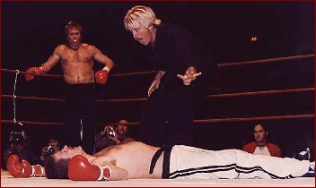 The fight lasted 75 seconds. Ronnie's Wife came up onto ring side and hit Lewis from behind over the ropes with her purse.
