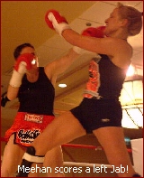 Meehan's opponent, Sher Noah claimed to be 16-0 as an amateur boxer and 1-3 as a pro boxer, but none of that experience did much to help her. In the second round, Sher turned her back to Meehan and when she turned back around, Meehan landed a great attack of punch and kicks to her stomach and at 1:10 of the round the bout was over. As in many previous Boxer vs Kickboxer match-ups, the outcome was the same, kickboxer win, Boxer lose as Sher just could not stand toe to toe with the experienced Meehan. The bout was fought under Pro International rules however Sher insisted upon wearing shinpads, a big NO in Pro Kickboxing. However somehow, those in charge allowed Sher to wear them. Needless to say, it didn't help her. Sher looked anything but an experienced boxer as Meehan took her apart with her hand combinations. Sher was able to land one good shot to Meehan's jaw but that was about it. Meehan won the 2001 IKF USA National Amateur Tournament IR Flyweight title when she defeated Tracy Kuschel of Omaha, Nebraska by unanimous decision, 29-28, 30-28 & 30-28. At the 2002 IKF National Amateur Tournament she successfully defended her 2001 IR Title by defeating Tamie Lankey of Alexandria, Virginia by unanimous decision 29-27, 29-27 & 30-26. In 2003 no women challenged Meehan for her National title so she switched rule styles and entered the Muay Thai Rules Bantamweight division. However she became the only walkover winner of the 2003 National Amateur Tournament when both her opponents, Alison Moore (2002 IR Champion) of New York, New York, USA and Alona Kipp of Casper, Wyoming, USA were both no shows at the event. Although not confirmed, it was possible Williams did not show because of the massive power outage in the north/east USA and parts of Canada that shut down many airports (Including New York) on Thursday before the event that year. We look forward to Princess Meehan's next big fight! |