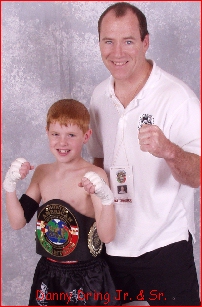 On the line will be the vacant IKF IR Junior Cruiserweight Intercontinental Title. Price's 13 year old son, Tyler Price (Right) won the 2005 IKF Junior Light Heavyweight (82.1 lbs. - 88 lbs. - 37.28 Kg - 40.00 Kg) North American tournament title when he defeated Jabari Rasheed of Durham, North Carolina, USA by split decision, 29-28, 30-27 & 29-28. With a record of 10-3/1 it was time for the 13 year old to step it up a bit.