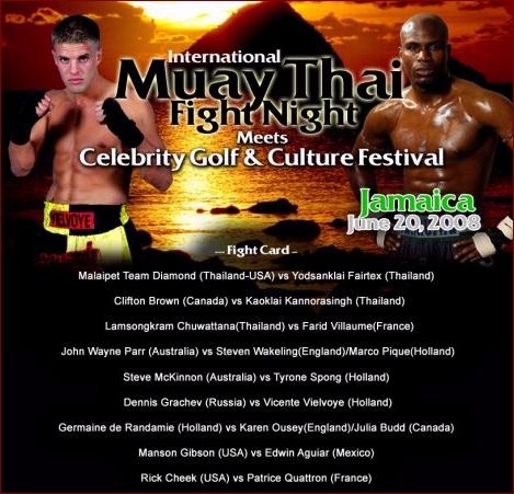 2008 RISARC and the Caribbean Classic Golf Invitational (CCGI) Foundation has teamed up with Warner to host a Pro Muay Thai event at their 4th Annual Celebrity Golf Tournament and Charity Event to be held June 18th - 22nd in Montego Bay, Jamaica. Proceeds will be used to purchase computers and establish technology learning centers in primary schools in Jamaica.