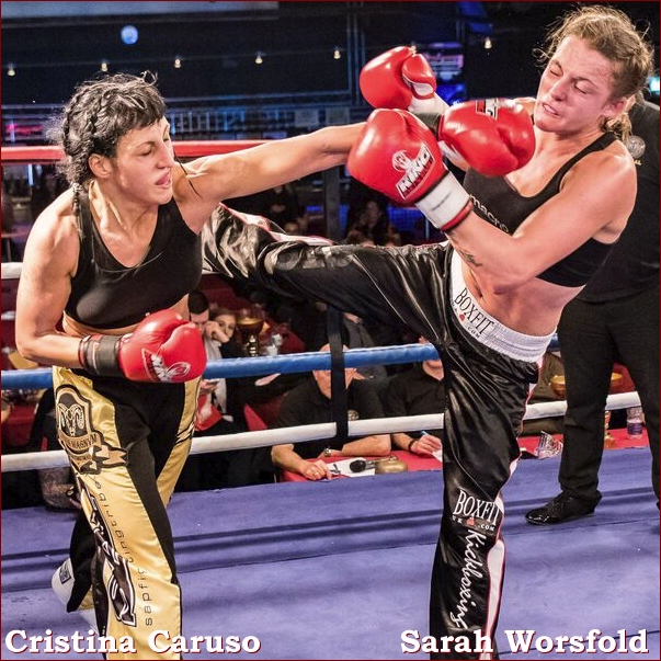 Amateur Women's Full Contact Rules In this much anticipated World Title contest, the highly decorated Cristina Caruso travelled from Italy to contest the IKF belt against the hard working Sarah Worsfold. Worsfold has been a fantastic ambassador for the IKF, winning and defending titles at every level en route to this opportunity. From the outset this looked to be a match of contrasting styles. Caruso very much wanted to work from the legs but Worsfold used her front leg to close the range before punching, with a fair amount of success. The early rounds were difficult to score with the Italians work more eye catching. But Worsfolds solid work ethic notched up the points, making it difficult for an audience to score. As we moved into the later rounds Caruso became more comfortable and controlled more of each round. But it was far from one sided, and you had to take into account Worsfolds solid early work. The work rate was one of the evenings highest and this was well worthy of it's 'World Title' tag. At the final bell it looked very tight and the split decision reflected that. Congratulations to Cristina Caruso from Italy, who becomes the new IKF World Champion!