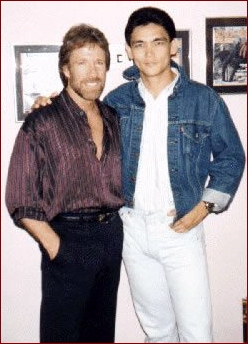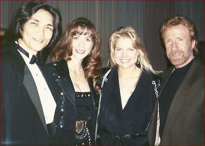 90's Picture with Chuck Norris and their girlfriends at the time.