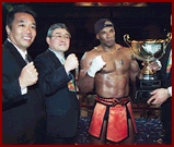 On Friday, May 3, 2002, K-1 Promoter Scott Coker (Left speaking) will host another version of the famous K-1 Tournament at the Mirage Hotel and Casino in Las Vegas to determine who will advance to the next round of the million dollar K-1 championship series. Despite losing 3 of his original selection of fighters (Maurice Smith, Duke Roufus, Thomasz Kucharzewski and karate fighter Basem Balbaki) Cooker is very excited about the final matches since the replacements are sure to add plenty of tournament action and in some cases, even more. The biggest upset to the Tournament this year was the loss of former IKF World Champion Duke Roufus. Roufus had to drop from the event when he suffered an ankle injury during training last week. However the loss of Duke to the Tournament will be Coker's gain in the end. Duke (Right) will now be replaced by his brother and current IKF World Champion Rick "The Jet" Roufus (Left) who will replace Duke in the tournament instead of fighting one of the nights Super Bouts. Rick, like Duke has won multiple World Titles in his career in several different organizations (Rick 6 different ones, Duke 3 different ones) and will be an exciting addition to the Tournament. He is also a former World Boxing Council (WBC) Continental Americas boxing champion.Duke had been named by the Mirage Casino as the second favorite to win the crown at this years May event and it will be interesting to see where Rick falls in the odds when the doors open Saturday night. Many remember last years (May K-1 where McDonald was basically robbed out of the title by the ridiculous half point system. However, if not for the "Phantom Punch Knockdown" he scored thanks to referee Ray Balowitz (Clearly confirmed by the in-house instant replay where Roufus fell back from being off balance from a strike he threw a split second earlier, however referee Balowitz mad a bad call to give Roufus a standing 8 count which cost Roufus the round and possibly the bout as well.) he may have never made it to the final in the first place. Regardless, against Maurice Smith last year, the trophy was looking like it was made for the Young Gun, McDonald, but in the end, the half point system gave a gift to Smith. Many say the trophy this year is McDonalds (Below Left) to win, or possibly lose as well... He's highly favored this time but the question is, "Do the odds makers really know his competition...?" Those in the know, know that his road to the trophy this year may actually be even tougher then last years road. This years tournament has much younger and stronger talent as well as some older talent that has some history with the favored McDonald... History he would rather forget... If Rick Roufus and McDonald meet in the final, this is sure to be the fight everyone will want to see because of some history connecting the two. Several years back on January 22nd, 1994 at Caesars Tahoe Nevada, Rick fought and defeated a much smaller McDonald to win the IKF Full Contact Rules Light Heavyweight World Title. In that bout Rick weighed in at 179 to McDonalds 178. It was over quickly as Roufus knocked McDonald out "COLD" at only 43 seconds of the first round. Roufus later retired the title to move up in weight and into leg kick rules where he later won the IKF International Rules Heavyweight World Title with a 9th round stoppage over Stan Longinidis (Above Right & Right) of Australia in Massachusetts on the infamous Mass Destruction PPV Event. It was Roufus' biggest win of his career but also his greatest disappointment since the promoters never paid him for his bout. With the drop of Duke and the replacement of Rick, you would only expect the fair thing to do would be to put Rick into Duke's open spot in the tournament to face Dewey Cooper as scheduled. However, for some reason the tournament match-ups were reshuffled. Roufus instead will face former IKF Amateur North American and IKF Amateur USA Tournament Champion Kurt Hasley, (Left) of Chattanooga, Tennessee. We last saw Hasley (240, 6'4") when he was making a name for himself at the K-1 Qualifier event in Milwaukee earlier this year. In round 1, Hasley met up with Michael Regnier (210, 6'3") of San Francisco, California USA and quickly overpowered him and exploded with several jab and right hand combinations that sent Regnier to the canvas at 2:17 of the first round. In his second bout Hasley met Andre Walker which proved to be a match where experience over-ruled the muscle. In the bout the action was calm until round 2 where Hasley came out as if there was no tomorrow landing some great explosive hand combinations on Walker. When the bell rang, Walker must have been ringin as well because Hasley connected on several clean shots to his head. When the round was over, Walker's corner informed the referee that he was done giving Hasley the win. In the final round he met DeNatale who will also be in Las Vegas. For the result of that bout, see below... In McDonald's first round match-up though, he will have a much tougher time than many might think. He will face off against who we have selected as the dark horse of the tournament...Giuseppe DeNatale (Left) of Winnipeg, Manitoba Canada. On February 9th of this year, DeNatale brought the legend of Rocky to reality as he came back not once but twice from what looked like sure defeat. In his opening round of the Milwaukee K-1 Qualifier Tournament, DeNatale dropped opponent Mark Miller about a minute into the opening round with a head kick and later exploding with a left - right combination that put Miller down for good at 2:07. In his round 2 bout, a 250 lb tree stood in the middle of his road to the final named Carter Williams, (Right, first alternate at this weekends K-1 - to be used in case someone drops out) who out-weighed him by 32 lbs (218 - 250) It was David Vs Goliath and as in the story told many times, DeNatale held on to win by a very questionable K-1, 2 knockdown rule call when DeNatale knocked Williams into the rope