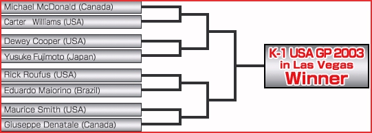 Mendez had experience with this kind of pressure before because at last years May 2002 K-1 they lost 4 of their originally booked fighters, Maurice Smith, Duke Roufus, Thomasz Kucharzewski and Basem Balbaki. Although Balbaki and Kucharzewski were no media loss, Smith and Duke were. But Mendez made the loss a gain when he booked Duke's brother Rick Roufus for the event.