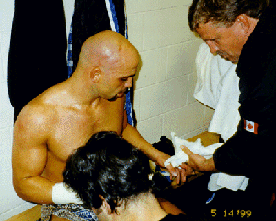 This event was the turning point as to how the IKF gets involved with Pro Purses. Before this event, the IKF had always trusted Promoters and Athletic Commissions when they assured them that the Purse money was honestly going to be paid. And why question these promoters who had already paid Don Wilson in full his $150,000.00 purse and Dick Kimber a $10,000 training fee in January. They had also already paid all the PPV deposits, the IKF helped greatly with the sanctioning fee expenses charging for 5 World Titles, 1 US Title and 6 Title Belts only $2,855.00. The Promoters had also already paid nearly $20,000 in plane tickets for fighters, officials and special guests as well. Although the Massachusetts State Athletic Commission assured the IKF that all the purse money was covered in the promoters license, it was a shock to EVERYONE after the event when none of the Fighters Checks could be cashed and ALL of the checks the promoter wrote to each of them all later BOUNCED! Rick Roufus (Left Below) was on top of the World After Defeating Stan Longinidis and winning his IKF World Title on Live PPV TV at Mass Destruction. However, it was the emotional trauma of not being paid his Purse that would quickly take him out of his winning ZONE! Although Roufus was paid $10,000 in training expenses up front, the Promoter never paid Roufus his actual purse of $91,000. YES, "$91,000!" After the event, promoters were no where to be found, leaving IKF President Steve Fossum alone in the arena with all the fighters and trainers trying to deal with things. The box office which Fossum was told by the promoters would cash everyone's check was closed and the Massachusetts State Athletic Commission had left the building. After an extensive search of the arena, Fossum found co-promoter Scott Haddad. Haddad who was discussing the un-paid purses with Roufus' manager and trainer in a private conference room. While the meeting took place, Dick Kimber (Pictured Below Left) came in and Haddad paid him $10,000 in cash right in front of Fossum, Roufus' manager and trainer. (Kimber had already received $20,000 for training fees around January of 1999 and demanded to be paid another $20,000 in cashiers checks only 3 hours before the event or he wouldn't fight. We were told later that the cashiers checks were for the other fighters. There were many issues that revolved around Kimber's pay as a possible partner of the promotion and when and how he was to be paid but these are all speculated or unconfirmed and now very hard to believe after we have seen the actions taken by the promoters to pay all the other fighters. ESPECIALLY hard to believe since Haddad never brought these issues up when he paid Kimber $10,000 in cash AFTER the event. ) Haddad apologized that he didn't have all the fighters "CASH" on hand but assured everyone their checks would clear that week. Of course... They never did. To make Haddad's credibility worse, he "FAKED" a phone conversation with co-promoter Phil Malonson acting as if Malonson was assuring him he could meet Roufus and Longinidis in the morning with their full purse. However, it was all a bunch of lies as no one ever met Roufus or his trainers or Longinidis the next day. The week after the event, only 2 checks cleared the bank. Curtis Bush's $2,500 purse and Juan Adams check for $1,000. Adams was a fighter who didn't even fight. Some time later, Kevin Rosier was paid half his $5,000 purse. In the end, who didn't get paid? Here's the list;