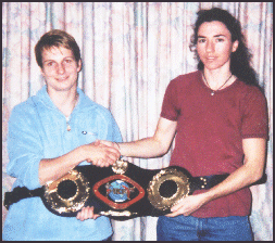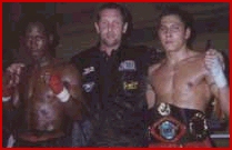 There's no question the upcoming K-1 Middleweight North American qualifying tournament has some top talent in it. All 4 of the fighters in it have either won or hold top titles in the IKF. The Tournament will be a part of IKF. Promoter Sven Bean's (Right) "Ring Of Fire 4" on Friday, March 15, 2002 at the Radisson Graystone Castle in Denver Colorado, USA. Here's a look at the challengers for the K-1 North America Middleweight crown. The Middleweight tournament will include Ole Laursen of San Diago, CA, USA via Copenhagen, Denmark. Laursen is currently ranked number 1 in the IKF Pro MuayThai Rules Middleweight division. His Pro record is 7 wins, 4 loses with 3 wins by KO. He is the current IKF Pro MuayThai Rules European Middleweight Champion. He's been fighting professionally for only three years but has quickly moved to the top. He's traveled, trained, and fought all over the world refining and perfecting his unmatchable technique and power. He was born in 1977 in the Philippines to a Danish father and Filipino mother, and raised in Denmark by his mother. His brother Christian Laursen was a Danish and Scandinavian professional MuayThai champion. Christian encouraged him at the age of 15 to begin training in MuayThai but Ole didn't study it seriously until joining the army at the age of 18. The turning point for him came when he defeated the Danish amateur champ by knockout. This event caused him to devote himself to MuayThai in hopes of becoming the best fighter in the world. Ole continued fighting as an amateur along with his brother for only one year, both brothers winning all fights by knockouts. He then moved to Thailand to train and turn professional. As a professional, he trained under Sam Lung who Ole credits with giving him the tools to be a disciplined MuayThai fighter. In 2000, he won the IKF Pro European Middleweight title over Eval Denton (Pictured at Right, L-R: Eval, IKF European Director Alby Bimpson & Ole) from England, in England by split decision. Next in the mix is Duane "BANG" Ludwig of Aurora, Colorado, USA. Ludwig has been known to the IKF for quite sometime now. As a Pro, he's currently ranked number 2 behind Laursen in the IKF Middleweight MuayThai Division. He has a Pro record of 7 wins with only 1 loss and an amateur record of 12 wins, 2 loses with 8 wins coming by KO or TKO. Our first view of Ludwig was on June 5th, 1999 in Orlando Florida, USA when he suffered 1 of his only 3 career loses in kickboxing/MuayThai. In Orlando, Ludwig met Tony Haddockof Orlando Florida to fight for the International Rules (Leg kicks, no knees) Light Middleweight U. S. Amateur Title. In round 2 of that bout, Haddock unloaded a blistering left hook that quickly dropped Ludwig to the canvas. Ludwig stood up as IKF Referee Dan Stell started the count but once up, he fell back into the ropes and it was obvious he was not able to continue. Stell stopped the championship bout at :51 seconds into the second round. At the time, Ludwig made it clear he only wanted to fight MuayThai Rules bouts. Why? The "ONLY" 2 bouts Ludwig lost as an Amateur were International Rules bouts. (Leg kicks, no knees) Ludwig's only other loss came in Calgary Alberta Canada to Trevor Desjarlais. Proving this in true form, in August of 1999 he redeemed himself as expected in a MuayThai Rules Championship bout when he captured the vacant IKF United States Super Middleweight Amateur Muay Thai Title with a unanimous decision win over Terrace James of Albq. New Mexico, 50-46, 50-46 & 50-45. He went on a month later to be one of the first ever IKF USA National Amateur "Tournament" Champions at the very first IKF USA National Championships in September of 1999 where he won the Light Middleweight MuayThai Rules U.S. Title. Ludwig's only other loss in his Kickboxing career was against seasoned Pro MuayThai fighter and ISKA World Champion, Alex Gong as an undercard on the K-1 Event in Las Vegas last year. The bout was for Gong's Title and if not for the half point scoring system, Ludwig may have pulled off a major upset. Ludwig has since made it clear he wanted a rematch with Gong for his World Title, but from what we've been told, no rematch has been offered. Befor Gong Ludwig had pro wins over Terrace James again, Steven Berkolyko, Sean Himes, then Bryan Poejoy, another fighter then Gong. After gong he defeated a fighter from France, on the Warriors Cup 3 show. As of today, his pro record stands at 8 wins and 1 loss. Ludwig also has a lot of experience in MMA/NHB with a record of 11 wins and 2 loses. He turned down an offer from the UFC to take the K-1 fight as well since it is his DREAM. So what's stopping Ludwig from fighting for the IKF MuayThai Rules Middleweight World Title? The same thing that's stopping everyone else... A fighter by the name of Kongnapa, who was not allowed to compete in the North American K-1 Middleweight event because he's a Thai. Kind of a shame he and others aren't allowed to compete. Ludwig would have been happy to meet Gong in the tournament, but he didn't want to be in it. So instead of a Ludwig Vs Gong fight or Ludwig Vs Kongnapa possibility, Ludwig will make the better financial decision in his career, to put aside a shot at a "World" title and go for the money in the Tournament. Not just any tournament though, he hopes to make it all the way to Japan for the Big Show! If he wins it all in, he gets a check for $100,000, and we all know, it would take a lot of World Title bouts to come anywhere close to that kind of cash. Next in line is IKF number 3 ranked Pro MuayThai Middleweight fighter and former IKF Pro MuayThai Middleweight World Champion, Robert Coquette of Winnipeg, Manitoba, Canada. Coquete and Laursen (Above) have something in common, they have both beaten Eval Denton of England for an IKF title. Coquete won his IKF Title by unanimous decision over Eval Denton of England, 48-47, 49-46 & 48-47 in Winnipeg, Matitoba Canada on February 12th, 2000. There's a little confusion as to w