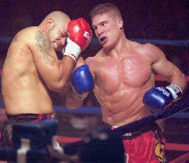 In the final match of the opening round, 26 year old Giuseppe "The Godfather" DeNatale (Left) will enter the ring with a fight record of 11 wins with 5 loses and 9 of his wins coming by way of KO/TKO. DeNatale stands 6' even and plans to weigh in at about 200 lbs. He trains out of Sik-Tai Muaythai Centre in Winnipeg, Manitoba, Canada. He was the 1999 IKF Canadian Amateur Heavyweight Champion as well. Greeting him on the other side of the ring will be 28 year old Mark "The Shark" Miller. (Right) Miller stands 6'3" tall and plans to weigh in around 210 lbs. His fight record is 13 wins, 4 loses with 8 of his wins coming by KO/TKO. He trains out of Iron City Gym in Pittsburgh, Pennsylvania, USA. |
