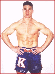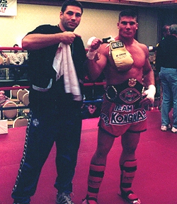 If you've ever been to Milwaukee, Wisconsin, USA in December, you need to make sure you go to the East side of town and stand on the shore of Lake Michigan. To say it's a lake is deceiving because when you look out at the endless body of deep blue water, you don't see the other side. From this view, you might think your standing somewhere on a Northern coastline facing the Pacific or Atlantic Ocean. The only thing that's missing is the giant waves breaking on the beach. What you will find though is a cold northern wind blowing in your face and maybe a little ice on the lake to add to its beauty. There is something about Wisconsin that has a certain mystic about it. High up in Central America it gets plenty of northern winds from Canada. Over the years it's been recognized as being the home of great American things like Harley Davidson, Miller Beer and of course don't forget, this IS Packer Country! Wisconsin is the home of The NFL Football team, the Green Bay Packers. A team filled with a strong tradition of winning behind great stars such as Bart Starr or Brett Favre lead by great leaders such as Vince Lombardi and Mike Holmgren. However to us here at the IKF and many in the world of kickboxing, Wisconsin is known for another Great American venture and it can be summed up in 2 words, "Gladiator Kickboxing!" On Sunday night September 6th, 1998 in Beloit Wisconsin, there was a Gladiator in the making. It was the first time a fighter by the name of Jason stepped into a kickboxing ring for his first real fight. It was bout 7 and when the fight was over, Jason had recorded his first of many wins over a fighter named Jack Lagrange of Dubuque Iowa by split decision. It was on a cold December weekend in Milwaukee Wisconsin when I first met this young Gladiator. It would be on a Saturday night, December 5th, 1998 where I would see him fight for the first time. His bout was overshadowed by other seasoned Gladiators of the sport who would take the spotlight on this night, but Jason's night would come... On the night, IKF Promoter Duke Roufus won the vacant IKF Pro MuayThai Rules Super Heavyweight World Title over Hirawa TeRangi of Auckland, New Zealand. Before his win, Richard Kostuck had successfully defended his IKF Pro MuayThai Rules Junior Welterweight Intercontinental Title by defeating Sakasem for the second time in his career. On the undercard was once again Jason, a Heavyweight Muay Thai fighter who had been paired up against Mark Vinesbright of Indianapolis Indiana, USA. Vinesbright entered the ring chiselled like a video game warrior fighter showing more muscle rips and curves than The Hulk. However, it would be on this night that "The Hulk" would face "The Gladiator" and Vinesbright's perfect 6-0 record was on the line against Jason with a record of only 1 win and no loses. During the bout, Jason lasted Vinesbright's strong round 1 attack with Vinesbright taking round 1 on all 3 judges cards 10-9. However in round 2, "The Gladiator", Jason pressed the fight scoring with several "STRONG" knees to Vinesbright's face and chest. His attack forced a standing 8 count to Vinesbright who seemed winded from the attack. Jason moved ahead on the score cards from the 8 count as he won round 2. Still taken back from "The Gladiator" attack in round 2, "The Hulk" lost his wind early in round 3 and eventually, referee Al Wickers made the right decision and stopped the bout at 1:11 of round 3. It would be Jason's first TKO/KO win and he improved to 2-0 while Vinesbright lost for the first time in 7 bouts. By the time the first IKF North Central Regional was promoted, Jason's trainers had already given him his first nickname, "The Roadblock!" At the Regional on April 17th, 1999 in Milwaukee, Wisconsin, Jason had registered to fight in the Heavyweight MuayThai class. He was 24 years old, 6' tall and 212 lbs with a fight record of 2 wins and no loses. However no one else entered at the weight so he was left without a fight. However, so was Light Cruiserweight MuayThai fighter Christian Toleque of Ohio. Both wanted some ring time and agreed to do an exhibition for the crowd. But hey...These 2 were BANGIN! What an EXHIBITION! Both fighters were undefeated, and neither wanted to give up any ground, even in an "Exhibition" bout where the fight wasn't judged. Instead, pride was on the line instead. Jason and Christian began working knee attacks like seasoned MuayThai warriors. Both fighters were big, ripped, and in great shape! In round 2, Jason caught a kick thrown by Christian and then went to work on his supporting leg. The crowd was really fired up, and so were the fighters! Jason unloaded a solid low kick followed by a well-timed right hand. Both these guys dug in deeply! By the time round 3 came around these two were into the battle. Jason was throwing some great punch-low kick combinations and followed up with knee attacks while Christian peppered back with swift jabs. Considering how hard both worked, one would never have guessed that this was an "exhibition, but now it was time for the Next Level for both to "Walk The Walk" at the first annual IKF USA National Championship Tournament in Council Bluffs Iowa. Jason enter the National tournament as a Heavyweight with 3 other fighters in his division, Steve Bass, 4-2/2 of Omaha, Nebraska, Harvey Green of Camp Pendleton, CA and Jermaine Wilson 6-2/3 of Evansville, Indiana. However, Wilson never showed at the Nationals and during matchmaking, Jason got the bye in round 1 and Bass fought Green on Saturday. In their bout, Bass defeated Green easily by TKO at :51 of round 1 to advance to the final against Jason on Sunday. It was Bout 19 on the day for the USA National Title when Bass and Jason met. In the end, we would be sure to remember The Gladiator's last name this time more than his first. He made everyone remember who the new IKF USA National Amateur MuayThai Rules Heavyweight Champion was, it was Jason JOHNSON (Right after Nationals Win) as this soon to 