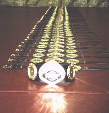 Our IKF/IAA VP of awards and merchandise Frank Curtis (Right) specializes in the perfection of each of these belts. Frank and his staff hand paint each and every medallion followed by clear coating so the brass won't dull over time as in past IKF Belts. No fast assemble line cut and paste here. Compared to the other generic championship belts, it would take 4 of them to equal the weight in one of these.