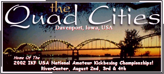 The time right now is about 10:25 PM and in about 3-4 hours from now, I will wake up from a quick power nap (of maybe 2 hours if I'm lucky) and start the long drive to the 2002 IKF USA National Amateur Kickboxing Championships by myself. Last year I had the pleasure of IKF Photographer Glenn Berg accompany me on the trip. However this year, he had to stay back here at homebase for the week until he can catch a flight with other IKF staff members on Thursday evening to arrive in Davenport on Friday morning. For some reason, I couldn't find anyone too excited about driving with me from here in California to Davenport Iowa, so I'll have plenty of time to think about what awaits me upon arrival as well as many of you next weekend. According to Yahoo Maps, the trip is 1,860 miles and estimated to take me 28 hours and 37 minutes before I knock on the front door of the Nationals Host hotel, The Radisson (Left) in Davenport, Iowa. However, for reasons I won't admit, I plan to make the trip a bit faster... Unless I run out of the Red Bull Johnny Davis and Frank Curtis stuffed into my icebox for the trip... So your probably wondering "Why would he be driving all that way... Can't he afford a plane ticket?" Well, for those of you who have been around the IKF since the 2000 USA Nationals event will remember why I now make the sacrifice to drive to this event every year. My buddy Johnny Davis will interject here and say, "Now Steve, don't get into those negative issues... just let it go.." OK Johnny, as per your advice, I'll just hit the headlines. Our Official shipping sponsor, UPS (United Parcel Service) "LOST" all the National Championship belts for the 2000 Nationals Event... and we didn't get them back until about 3 weeks after the event. Oh there's a lot more to this story, but as Johnny suggested... I'll stop there. There was nothing worse that year than seeing all those Champions walk away from the ring with a "BORROWED" IKF USA National Champions Belt knowing they had to give it back after a quick picture. All those Champions, young and old that fought their heart out that year and were sent home with just a promise that "We'll mail your belt to you..." What a crock of an explanation I thought... Here these amateurs traveled all this way, fought hard and won the National Title and now had nothing to carry home, let alone raise high above their head when they met those waiting for them at the airport or at the front door. If not for Brooks Mason taking some of the pictures we took of the belts before they left IKF Headquarters (Above right) and making some large prints of them at the local copy shop, I'm sure all those fighters would have thought something like, "Oh great... They couldn't afford belts this year..." It took these Champions nearly a month before we could get their belts to them as we waited for UPS to find them. "NEVER AGAIN!" I said. Never again will I not be able to see the joy on a Champions face as they carry their IKF Champions Belt proudly over their shoulder as they leave for home Monday morning. This event always costs us more than it will make as far as financial income. However, what we get in return is worth far more than the money we spend to make this event happen. Nothing can replace the smile on a fighters face when their hand is raised in victory. Nothing can replace the look of the fighter who fought hard but came up short, but still stood proud in the ring knowing he or she "Walked The Walk" against the BEST Amateur Fighters in the Nation on this weekend. I'd drive 3,000 miles to make sure these belts are there for those Champions on Sunday. I'll be tired, as always, but the adrenaline and excitement of everyone will energize myself and everyone there as if everyone's energy worked as one. On average over the last 3 USA Nationals Events, I get about 8 hours sleep from Thursday night to Sunday night. But the excitement of everyone there gives me more energy than I will experience throughout the year. It's the "Who's Who" of Amateur kickboxing in America. If I could afford their ticket, I love to bring IKF European Director Alby Bimpson and Jacqui here to see it. I'd bring Andre from Malaysia, Robert from Australia, Evgeny from Belarus, Alex from Japan, Oleg from Russia and a hosts of others. These guys have no idea what their missing. Someday they will be able to experience it and feel as excited as I do about it every year. Next weekend we will all be surrounded by some of the greatest trainers in the world as well as some of the greatest fighters in the world. Their presence humbles me beyond all means. "THEY" are the Champions on this weekend. I will be proud just to work hard and make things happen. The many officials and staff that will be volunteering their time to help, what can be said of them other than "THANK YOU!!" Without them, this event couldn't happen. OK, maybe I'm getting too emotional here, but if you've ever been to this event, you know what I'm talking about... This event will change your life in so many ways. The trainers who give their time, effort and knowledge to their fighters with no financial compensation in return. Their sacrifices they make is rewarded when their fighters proudly enter the ring of battle to "Walk The Walk!" Everyone this weekend will be surrounded by some of the greatest fighters in the world as well who will have their focus and attention on their own fighters instead, helping them achieve their dreams of becoming a True Kickboxing Champion like them. Some of them include IKF Pro Champions like World Champions Mike LaBree and Dave Marinoble, as well as US Champions Jim Zbilski and Kevin Hudson. But don't forget the other Pro Champions like Richard Trammell, Phil Nurse, Troy Dorsey, Scott Mincey, Johnny Davis, C.B. Bunkholt, Mick Doyle, Ray Thompson, Clerance Thatch, Pat Miletich, Horace Craft and the list goes on and on. While in their presence, I am humbled greatly by what they have accomplished in their lives. Th