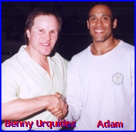 No, this is no April Fools joke.. On March 31st, 2003, IKF Amateur Champion Adam "Elder" Rogers (Right) of Seaside, California, USA announced his retirement from the ring. Rogers has not left the sport though. He's been swamped with running his school (BODY WORX Kickboxing & Martial Arts Academy) and training fighters of his own. This along with raising his children has kept him very busy. Although he still has the fighting spirit in him, he no longer has his trainer and no one to spar with in his area. With such a busy schedule, he has no time to travel to train either. Rogers told us, "I retire with a heavy heart because I know I still have it in me. Perhaps if I get a trainer here near me I can make a come back." Rogers has been a name in the IKF for a long time. At the announcement of his retirement, he still held the IKF Light Middleweight Amateur International Rules California Title. A title he won on May 20th, 2000 in Fairfield, California, USA when he defeated Tony Sanza of Fairfield, California by TKO at 1:03 of the second round. Rogers was ranked number 6 in the IKF Amateur International Rules Rankings as a Light Middleweight with a fight record was 8 wins, 3 loses and 3 wins by KO/TKO. He was trained by another well know and respected name to the IKF and the sport of kickboxing, trainer Rick Noble. Rogers has been teaching martial arts for over 20 years. He holds black belts in African American Shadow Boxing, Tang Soo Do, Tae Kwon Do, and Hapkido. His last "Scheduled" bout was back on December 7th in Roseville, California, USA against against Maurice Hooks of Modesto, California. However a leg injury forced Rogers out of the bout. He won the 2000 IKF/RINGSIDE USA International Rules Light Middleweight Title when he defeated Kurt Leda of Omaha, Nebraska by unanimous decision, 30-26, 30-25, 30-25. In 2001 he fell short of defending his title when he lost in the final to Jorge Hernandez of Aurora, Colorado, USA by unanimous decision, 29-27, 30-26 & 29-26. That same year (2001) Rogers also cornered and trained 4 of his fighters at the same event including 2 Time IKF USA National Champion Narayan Stitt (Right - 2000 & 2001 National Champion) who retired from the ring last year on October 23rd, 2002 to pursue a career in Law Enforcement. Stitt was also the IKF Amateur IR Middleweight California Champion. Although unknown at the time, his bout against Hernandez at the 2001 IKF USA Nationals was Roger's last bout. In November