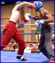 Last night, July 26th, IKF Pro San Shou World Champion Cung Le and his Cung Le Promotional team hosted an excited crowd to 9 Amateur San Shou bouts and an exhibition bout at Born to Fight III at the Mt. Pleasant High School in San Jose California, USA. The full day event featured a limited contact daytime tournament followed by the night time full contact event. However, from what we saw at the day event, there was plenty of up and coming talent there and some appeared more than qualified to be on the night time full contact show. We are sure to see some of these individuals in the full contact ring soon. The night time event started off with an exhibition bout which was followed by 9 real bouts. Although the main event was to be the top bout of the night between a top amateur woman's MuayThai fighter and a top amateur woman's San Shou fighter, some of the other bouts were just as exciting and could have also been billed as the main event. CORRECTIONS MADE ON 7-28-03: One of the first of two that come to mind was the bout that matched up IKF Amateur San Shou California Cruiserweight Champion, Brian Madigan of Oakland, California, USA (14-5/0, 189, 6'1", 28, Brent Humby) against James Fanshier of El Dorado Hills, California, USA (9-1/4, 183, 5'10", 31, Cung Le). What made the bout more special was Fanshier took the bout on 48 hour notice when Madigan's opponent from Holland informed the Le camp that he could not make the event. Fanshier looked as if he had been training for the bout for months. This was a rematch. The two fought in Atlanta about a month ago to make the USA San Shou Team in a traditional San Shou bout fought on a let tai platform. In that bout, Fanshier defeated Madigan. (Please see below on this page on 7-17-03 the headline, "Love and Hate") The always in shape Fanshier had a war on his hands since Madigan was primed and ready. For 3 rounds the two went toe to toe which was highlighted by a blasting head kick by Madigan that dropped Franshier to the canvas in round two. He beat the count and continued strong until the end. In the end, Madigan marked up close split decision win. The other bout that stood out was between one of Cung Le's top coaches at his school, Ed Carpio (10-4/0, 134, 5'5", 30, Cung Le) and Duncan Duffin of Wyoming, Michigan, USA, (7-5/1, 133, 5'6", 34, Douglas Duffin). These two put on an exciting 4 rounds of San Shou action and had the crowd on their feet. Carpio though had little trouble dominating when he needed to, never losing a single round to Duffin. Carpio took the win by unanimous decision. The main event of the night was the fight that matched up two different rule styles against each other... well sorta. In one corner stood top amateur woman's MuayThai fighter Lynda Loyce (Right) of San Francisco, California, USA (10-3/1, 125, 5'4", 26, Jongsanon & Boonkerd Fairtex) and in the other corner was top amateur woman's San Shou fighter, IKF Woman's Amateur San Shou U.S. Champion, Jenna Castillo (Right) of San Jose, California, USA (12-0/2, 121, 5'2", 21, Cung Le) It was clear to us that this was the bout the majority of the crowd had some to see. We said "Sorta" above because this was not exactly two rule styles against each other. Although the two excelled in different rule styles, this bout would be fought under only one of them, San Shou rules. The San Shou rules not only added an unfamiliar element for Loyce to deal with (Throws) but also take away one of her strongest weapons, her knees. So why would Loyce agree to such a bout? Easy answer, the two promised no matter what the outcome, to rematch in September under MuayThai rules. Since this was under San Shou rules, it should have been all Castillo, but Loyce had no such plans. Although the frustration was obvious on Loyce's face when dealing with the throw attempts, she never backed down and held her ground pretty well against Castillo. The throws was what many thought would be the difference. They were in many spectators minds, Castillo's main weapon and strong point.... Ahhh... at least that was what we thought anyway. Calling us wrong, it was not Castillo's throws that stood out, it was her boxing! Yes, her BOXING! There were numerous times her hands lit up Loyce, even dropping her with a straight right in one round, which was probably a surprise to Loyce as well. But Castillo could not control the bout as many thought she should or would. Loyce did an excellent job of mixing up her attack and strategy on Castillo as well, taking her out of her San Shou focus and forcing her into her game of leg kicks. But to the surprise of many, when it appeared Loyce attained the level of control she needed, now it was Castillo who would take her out of her game with a throw or her boxing. Leg kicks never played a major role in this bout. Both took them and gave them without a blink. In the end, Loyce proved she could hang in another rule style. Maybe not win yet, but she took the fight to the end and made many respect her ability because of it. Castillo proved she was not afraid of anyone in any rule style... well, at least for now. Come September, we will all see if taking Castillo's throws away will change her game much. Loyce is looking forward to the opportunity to introduce her knees to Castillo in "HER" game of MuayThai. It will be interesting to see what strategy the still undefeated Castillo brings to the ring in September. As for Loyce, we can pretty much figure whats on her mind, "Knee! Knee! Knee!" We look forward to the rematch. Castillo will take the win this time but not unanimous, it was a majority decision since one judge, Ray Belowitz scored it event at two rounds each while the other two judges gave it to Castillo 4 rounds to none and 3 rounds to 1. Here are the results of the nights other bouts: