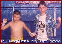 The Fightatorium will see action again here on April 5th as 2002 IKF Men's FCR Light Welterweight Tournament Champion, Doyle Gayler faces Calvin Pitts of Grand Prairie in a 5 round main event. For more info, contact promoters Chuck Best (Left) or Steve Goin (Right) at (972) 889-0129, or e-mail them at juno.com@sirkikman or visit www.kingdomkickboxing.com or www.kingdomkickboxing.com/nacso.html. |