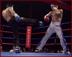 Rocklin, California, USA Friday, November 14th, at 8:PM, (doors open at 7:PM) the Rocklin Sunset Center will be transformed into a "Las Vegas Style" arena for a night of exciting Kickboxing action as some of the best fighters in California clash at center stage! Its this stage that will separate the contenders from the champions and the weak from the strong. With only one man between them and hundreds of screaming fans those at center stage will be the sole deciding factor of the other's fate. It will be a night of historical proportion and one of Feet and Fist of Fury(FFF) ! The Fight Card: Two time IKF National Champ, 2002 IKF North American and IKF California lightweight champion Robert 'Slim Shady" Elledge (Right) of Roseville will take on the tough and aggressive, Navy Seal candidate Mike Bolig of Napa, California. Bolig and Elledge are no strangers in the ring as they faced off several months ago in Fairfield, California in a "Boxing Brawl." Bolig was not satisfied with the close decision by Elledge and is eager to show the young champion he has what it takes to walk the walk in the main event of the evening! Mike "Machine Gun" Marinoble (Left) of Roseville, California is the IKF California Heavyweight Kickboxing Champ (above the waist kicks) and fights out of IKF World Kickboxing champion Dave "Mad Man" Marinoble's gym in Roseville, California. Mike will take on a determined Hector Gutteriez of Santa Rosa, California. Word has it that the 209 lbs Gutteriez plans to bring it hard because of Marinoble's novice experience and first attempt at the International Rule style which includes kicks to the legs. In another semi-main event, Dion Pimento of Roseville, California will test his skills against one of the best middleweights the State of California has to offer, Floyd Savoy of San Francisco, California. Floyd is coming off a recent victory over Derek Burnsed of Roseville who had to drop out of this event due to some old injuries that needed more time to heal. Some are predicting the Savoy/Pimento bout to be one of the best of the evening! A fight that may be one of the night's big surprises and will test both men - 150 lbs. Johndell David of Concord, California has an impressive record of 8-1 and will have his feet and hands full with a man who has knocked out every opponent in all of his eight fights except the two who defeated him. Dareo Guzman of Las Vegas, Nevada will go for another knockout in this International Rules (leg kicks) Kickboxing match! In the only woman's bout of the evening, Molly Pelton of Newcastle, California will do battle with Casey Nolan of San Luis Obispo, California. Additionally, the "FFF" card will have more exciting bouts such as: |