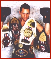 Don won 11 Professional Kickboxing world titles during his career including the IKF Cruiserweight World title in 1999 when he set and still holds the record for the highest fighters purse ever paid to a Professional Kickboxer, $150,000.00. That was May 14th, 1999 in Lowell, Massachusetts, USA when he defeated 3 Time World Champion Dick Kimber on his way to winning the vacant IKF Pro Full Contact Rules World Cruiserweight (186.1 lbs - 195 lbs. or 84.6 kg - 88.6 kg) Title. (After fight picture at right)