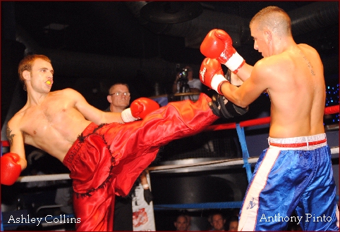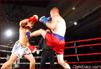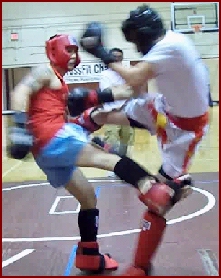 Daniel Hodges of Rocklin, CA and Gaston Balanos of Dublin, CA will be fighting for the IKF CA Welterweight title but are not the main event on the upcoming show. However, if you witnessed their last fight that ended in a draw, action packed with toe to toe action, you would know that this is not a fight you want to just hear about later, but instead, you will want to be on the front row of this brawl for it all! Although only the semi main for this event, it will be a fight with main event caliber written all over it! It's evident in Balanos and Hodges' demeanor that neither of these guys are afraid of each other but both have high regards for the other's ability which will make for some awesome fireworks in the ring! Left: Hodges lands a kick on Balanos' chest Gaston gave a call to AK Promotions' office the other day...after some prodding from Hodges camp to make it clear "That Daniel better be ready for 5 hard rounds and be ready for a good butt kicking!", he made it clear of his intentions to take the title back to Dublin. However, on the other hand, Hodges has his own plans to bring the title home himself and is not shy about his claim for the IKF Gold. He's been training hard and inviting many of his friends, family and military associates to witness the battle. Hodges, like Balanos, makes it clear to everyone that this will be a great fight and one of these warriors will truly go down for the count if he gets careless, and the look in Hodges eyes is clear that he means what he says. Balanos is a skilled Muay Thai technician while Hodges is more of a brawler who is very strong, hard hitting and improving as time goes by. The results could go either way...but one thing for sure, the fans will get their money's worth out of this fight alone...get ready for a war! |