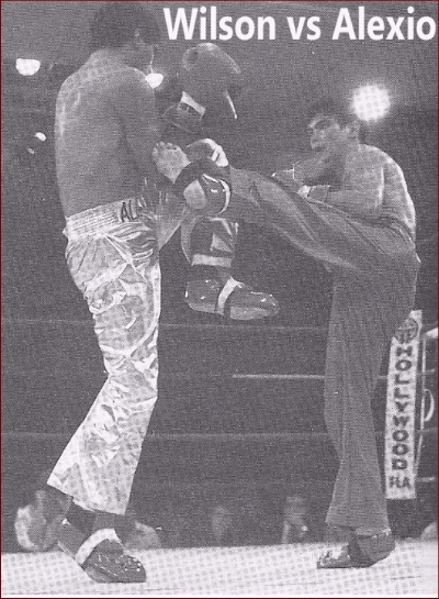 BACK STORY 1... (**) Wilson was flown to Tokyo, Japan and had a signed contract with the WKA to defend his WKA "Light Heavyweight" title at 175 lbs he had won in October of 1980. This was to be Wilson's 7th defense of this title. However, for unknown reasons, Smith came in at 190 lbs. apparently thinking he was defending "His" WKA World title at 190 lbs. The Japanese promoters were as shocked as Wilson was about Smith's weight and feared the bout would be cancelled. However Wilson, always looking out for the greater good of the sport and a desire to save the show for the promoters agreed to move forward with the bout. Keep in mind, there was no athletic commission or country fight sport regulatory body to regulate the weight spread between the fighters weight {which was a max spread of 7 lbs - using the weight of the lightest fighter} Only Howard Hanson of the WKA who ignored the 15lb + weight spread between the fighters in exchange for a good fight. When all was said and done Wilson defeated Smith by decision and won the WKA Cruiserweight World Title. This was a Leg Kick Bout - Like the IKF International Rule Style - WKA just called it Full Contact Rules at the time since this was when some of the martial arts tournaments were still semi contact vs "Full" Contact fighting in a boxing ring. Directly after the bout, Wilson vacated the title because he had no plan of ever fighting at 190 lbs. again since he could not make that weight. His fight weight at the time was around 175-180. BACK STORY 2... Realizing the two were not at the same weight, then WKA President Howard Hanson made up a new weightclass so the two could still fight, which was called the WKA Super Light Heavyweight World Title which was a heavier weightclass that Alexio could make. { Like the Smith bout, this was a Leg Kick bout - like the IKF International Rule Style} Still, like in the Smith bout, at the lowest weight of 173, the maximum weight spread for these two should have been 7 lbs. However instead, with Wilson at 173 and Alexio at 182, the spread was now 9 lbs. Keep in mind there was no state athletic commission in Florida at the time to oversee fighter weight spreads, only WKA Sanctioning body President Howard Hanson. BACK STORY 3...