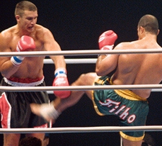 Stefan Leko (The Finesse Fight) This classic young lion-old lion battle ended with the old lion making no errors defensively and shutting out the young lion. To make matters worse for Leko, he was hit while throwing a high kick and lost his footing. The referee originally called it a slip then changed his mind and called it a down. As quick a Leko was, he just couldn't solve the puzzle in time or make up for the spread in points. Hoost by decision. Jerome LeBanner vs.