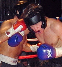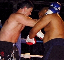Atlanta, Georgia, USA: It was a late night in Georgia when the main event took center stage. It was 1:AM Eastern Time. However it would be the final touch of a FULL HOUSE/SELLOUT event that had already seen 12 great bouts in Full Contact Rules, International Rules, MuayThai Rules and ISCF Mixed Martial Arts at the Atlanta Brewing Company in Atlanta Georgia. Nothing is better than a sellout other than great bouts, which is exactly what the full house crowd witnessed... This event had EXCITMENT! Atlanta Georgia, USA Promoter Lane Collyer had stepped back from his familiar position of "Event Promoter" so he could fight on this event, putting this job title into the hands of his Sukotai Inc. partner, Ron Gaiteri (Right). The night was a MAJOR Success for all involved which included the events major sponsors Spondivits Food & Spirits of Atlanta, Georgia (who has the greatest seafood we've ever tasted!!!) and the Atlanta Brewing Company (Venue sponsor) located in Midtown Atlanta, Georgia. It was a first class event that featured great seafood and hamburgers catered by Spondivits and free Microbrewery Beer for all those of age from theAtlanta Brewing Company (except officials of course...) and of course, a lot of great fight action!! It was truly a night of Fights, Food and Spirits. As we said, the main event had to wait until after midnight, but it was worth it all as Goutiar, Mississippi's #13 ranked (IKF Pro MuayThai Division) "BIG" John Dixon (245, 18-1/18) and #11 ranked (IKF Pro MuayThai Division) "Lightning" Lane Collyer (Left, 18-3/11, Atlanta Georgia) stepped into the ring to contend for the vacant IKF Pro MuayThai Rules Super Heavyweight United States Title. Although Collyer's had all of his ring success in the Heavyweight division, (Under 210 lbs) he wanted to move up in weight to the Super Heavyweight division, (Above 209.1 lbs.). At the weigh-ins, Collyer barely made the minimum weight for the Super Heavyweight Pro MuayThai Rules Division, weighing in at only 209.5 lbs. On the other side of the ring, Dixon was a true Super Heavyweight weighing in at an even 245 as planned. If Dixon's record wasn't intimidating enough, his size was. However, when the two stepped into the ring, it was clear to everyone that Collyer was a lean 210 lbs while Dixon looked a bit soft around the middle. To most, it would appear that the big man may get winded early, but who knows in the fight game. We all know Dixon didn't get here by being winded early and losing. With only 1 loss in his 17 kickboxing bouts of which all 17 were won by TKO/KO, Dixon was here because he's a winner, as was Collyer. Better yet, when the fighters are this big, anything can happen... Here's the round by round action of the main event.... ROUND 1 ROUND 2