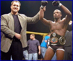 Since the IKF took over the operations of the ISCF a few years back, it has always been an addition to the IKF Web Pages. However, as of today, all that has changed and the ISCF is now ready to venture out on it's own. The New ISCF Web Page is www.ISCFMMA.com (Later changed to ISCFMMA.com) The ISCF concept was created by Nick Carroll, Jiro Shiroma and Tom Proctor, all from Arizona, USA. The group originally approached the IKF to design an ISCF title belt. As the IKF and IKF President Steve Fossum became more involved, he requested the IKF take over the sanctioning operations of the ISCF to build a bigger organization. With all eager to see the ISCF grow the decision was easy and Fossum and his staff took over the ISCF operations and went to work. The first step was to have a logo created that was similar to the IKF logo. So Fossum contracted with Foster Graphics (The same design firm that designed the new IKF logo) to design the ISCF logo and the true beginning of the ISCF had taken shape. IKF President Steve Fossum and his staff soon went to work on building the ISCF much the same as the IKF with structured rankings, updated news and an active website. However, the website will become even more active now since it will be a solo site without the back-up of the IKF pages. "The two will still share links but creating an independent site for the ISCF will provide an easier marketing strategy for the ISCF in regards to advertising the web page worldwide now." says IKF/ISCF President Steve Fossum. Although Carroll & Shiroma are less active in the Mixed Martial Arts Sport, Tom Proctor, (Right with Belt) went on to win the ISCF Pro Heavyweight Title. Proctor is still active in fighting and also has produced an intense training program that can be found for sale in Black Belt Magazine. A major help to the ISCF growth was Augusta Georgia Promoter Mike Carlson. (Above left) Carlson is now the ISCF Director Of Operations and his work includes the organizing of the well known mixed martial arts promotion called WEF "New Blood Conflict Part 1". In the event, Din Thomas (of Team Rival, Pictured with Title Belt at Left with Carlson) defeated Jens "The Pulverizer" Puiver (Team Extreme) by heel hook at :35 seconds of round 2 to win the first ever ISCF Pro WORLD Title on August 26th, 2000 at the Augusta-Richmond County Civic Center in Augusta, Georgia, USA. Carlson has also been busy refining all the ISCF rules and regulations along with promoting his own events. One of them is coming up next Saturday night, February 24th, which is titled "Winter Wars 2001" The event will begin at 7:00 PM in Gym 1, The Sports Arena, at Augusta's Fort Gordon, Georgia, USA. ISCF promoters have included WEF Promoter Jamie Levine, Jeff Mullen of Memphis Tennessee, USA, James Corbett & Matthew Waller of Georgia, USA and Donnie Michael & Terry Gruel of Indiana, USA just to name a few. Once again, the NEW ISCF Web Site can be found at: www.ISCFMMA.com (Later changed to ISCFMMA.com) |