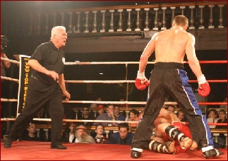 crushing left hook to Kadir's ribs. It didn't take referee Dan Stell